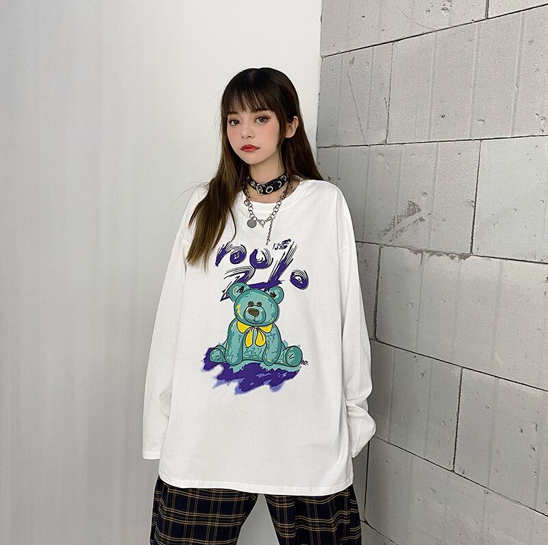 トレンドスタンダードベーシックプリント柄スプリングゆったりシャツ メンズレディースTシャツ ロング レトロ 春物 ボーイズ 長袖 CHIL9391352418