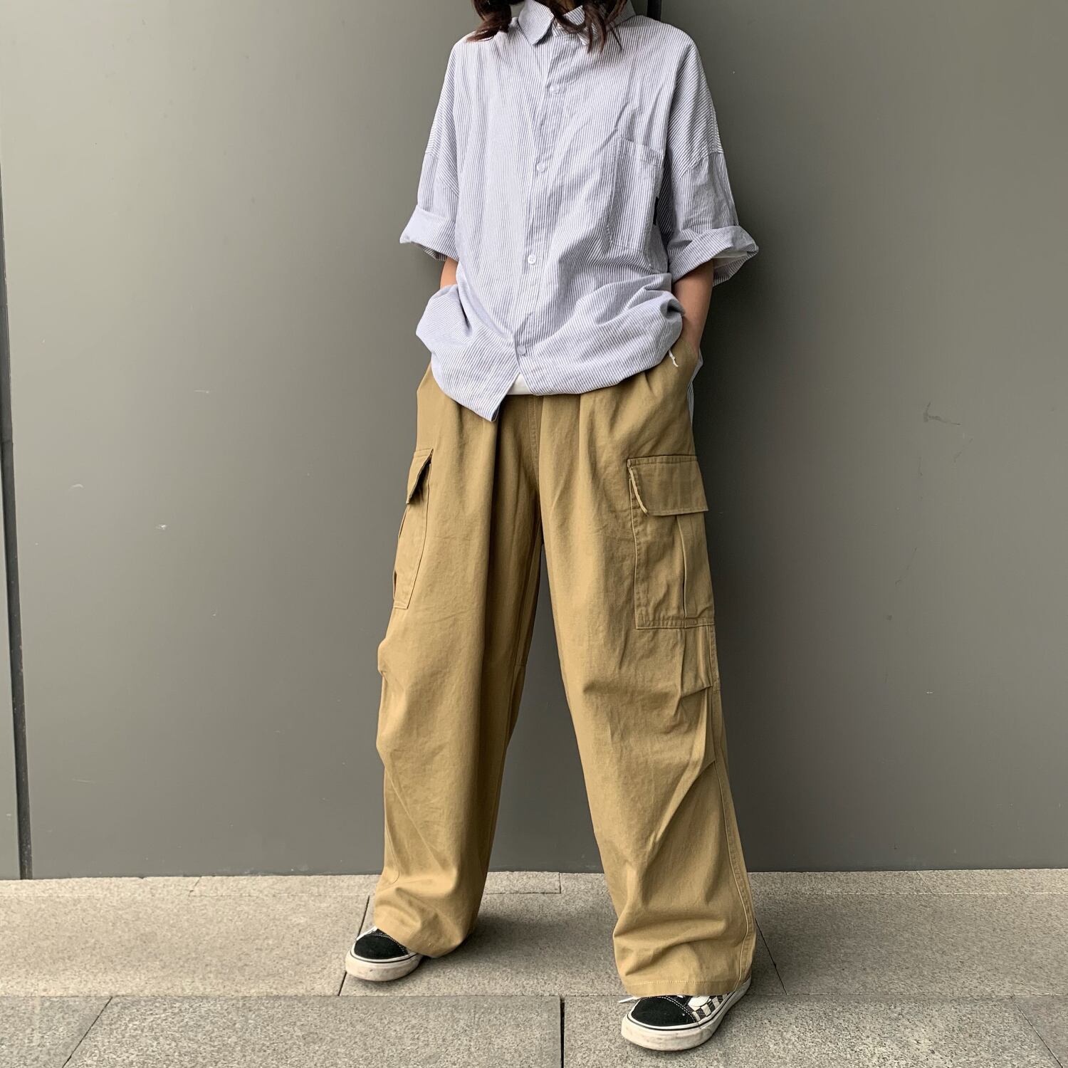 カーキパンツレディース秋物ウィンタートレンドワイドレッグパンツ ルーズハイウェストウェストカジュアル ストリート オータム 冬物 ワイドパンツ ウエスト デーモン53698879965