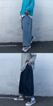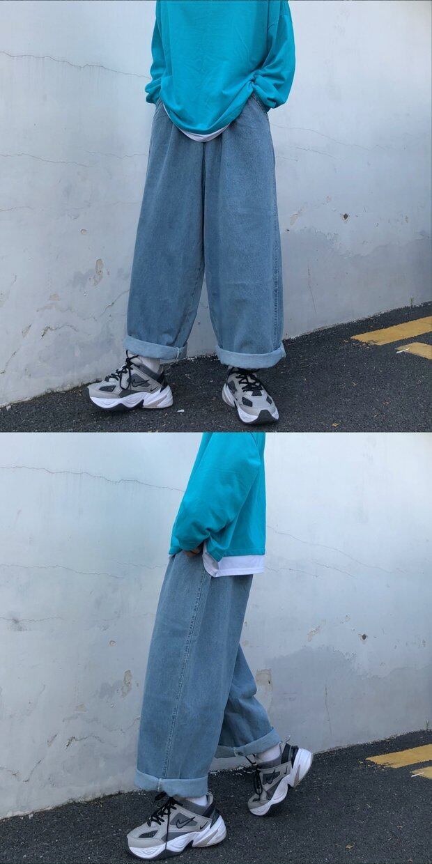 ブルージーンズ 秋物ウィンター韓国ファッショントレンドルーズワイドレッグパンツ オータム 冬物 ショーツ ブルマー ワイドパンツ スタイル デーモン72479858534