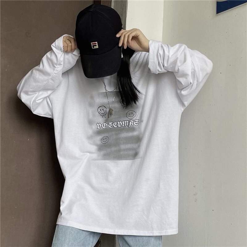 Tシャツシャツ レディーススプリング韓国ファッショントレンドスタンダードプリント柄カジュアルゆったり ロング レトロ 春物 スタイル 長袖 デーモン42031587913