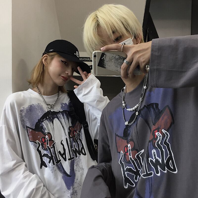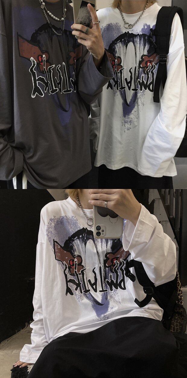 トップス レディーススプリング韓国ファッショントレンドスタンダードプリントルーズホワイトTシャツシャツ ゆったり ロング レトロ 春物 スタイル 長袖 デーモン92965201002