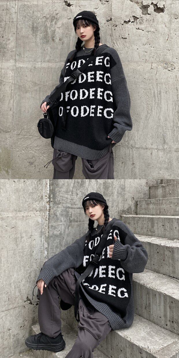 秋物ウィンターラウンドネックセーター レディース韓国ファッショントレンドルーズコート オータム 冬物 Oネック スタイル デーモン65433045645