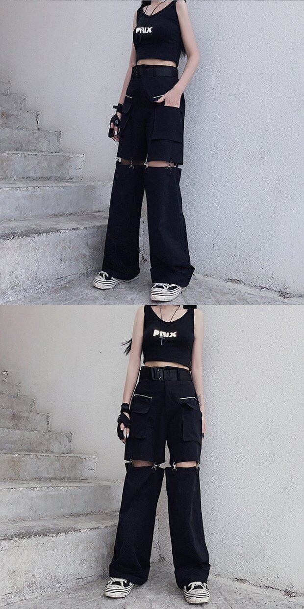 カジュアルパンツ レディース秋物ウィンタートレンドブラックルーズワイドレッグ ストリート オータム 冬物 ワイドパンツ ボーイズ デーモン56444959846