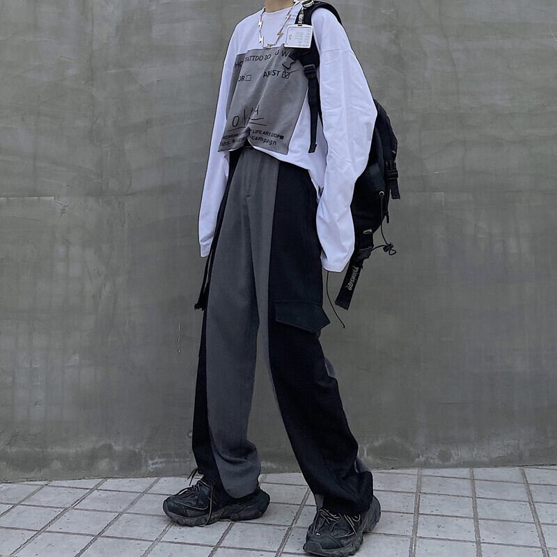 カジュアルパンツ レディーススプリングトレンドルーズハイウェストウェストワイドレッグ ストリート 春物 ワイドパンツ ステッチ ボーイズ ウエスト デーモン8985323807