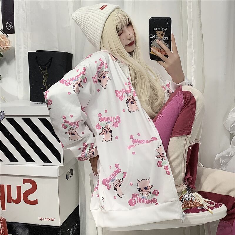 セーター レディーススプリング韓国ファッショントレンドスタイル厚みルーズジッパージャケット 原宿 春物 デーモン42772608664