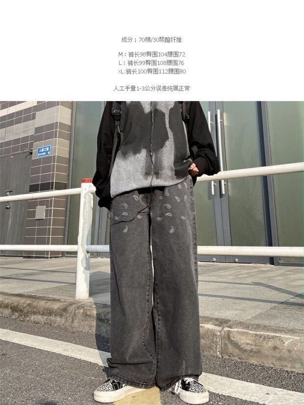 ジーンズ レディーススプリングトレンドFlowerデザイン ルーズハイウェストウェストカジュアルパンツ ストリート 春物 フラワーデザイン ウエスト デーモン23987022761
