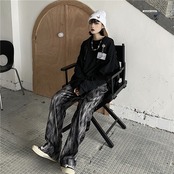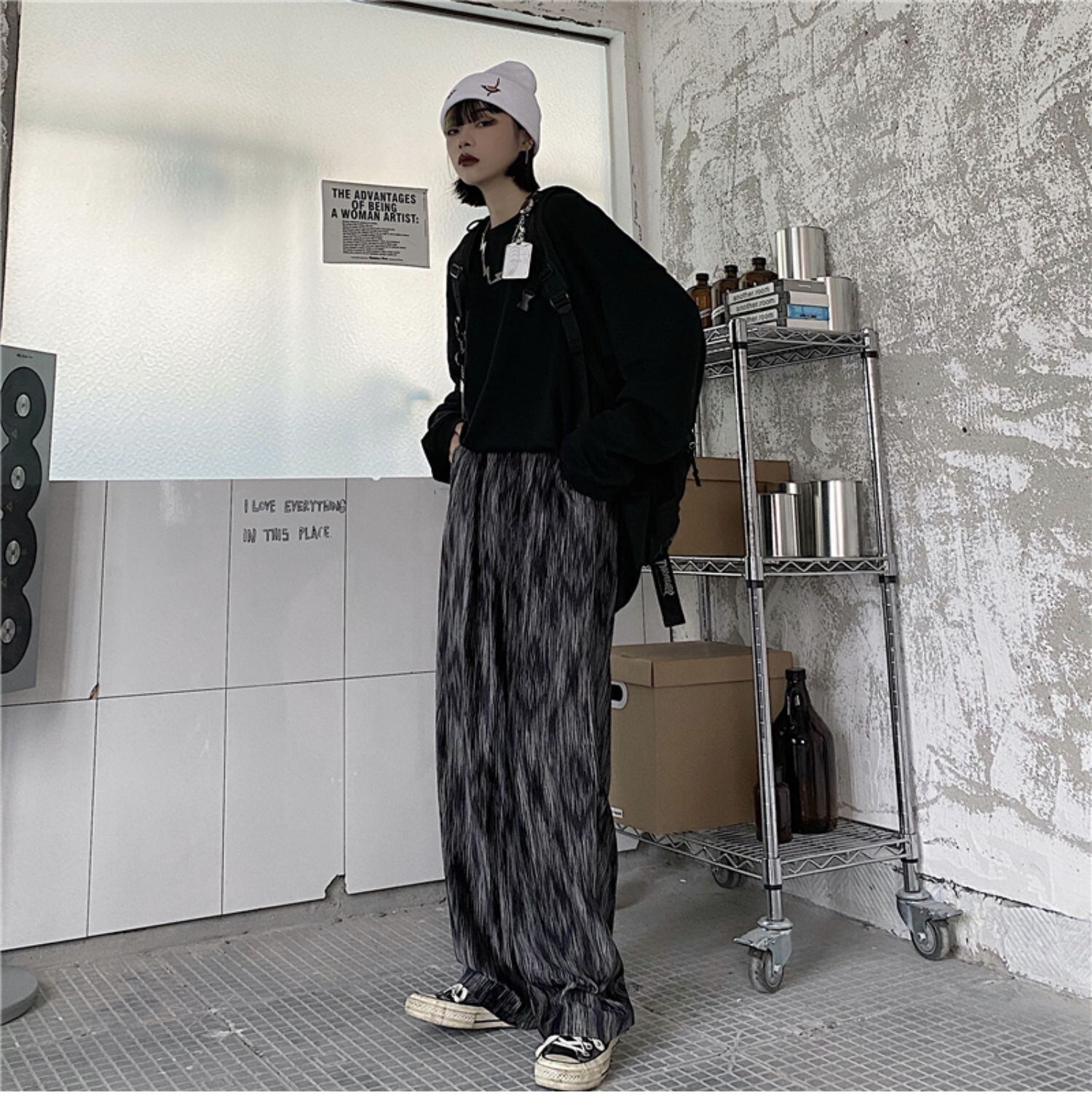 レディース秋物ウィンター韓国ファッションストライプワイドレッグパンツ ハイウェストウェストルーズ オータム 冬物 ワイドパンツ ボーイズ ウエスト デーモン3681400773