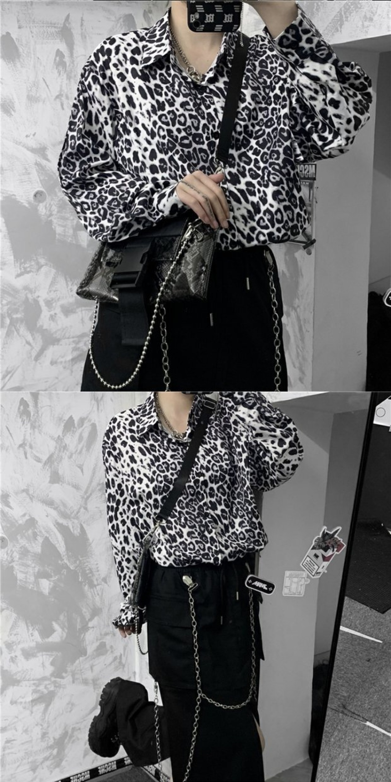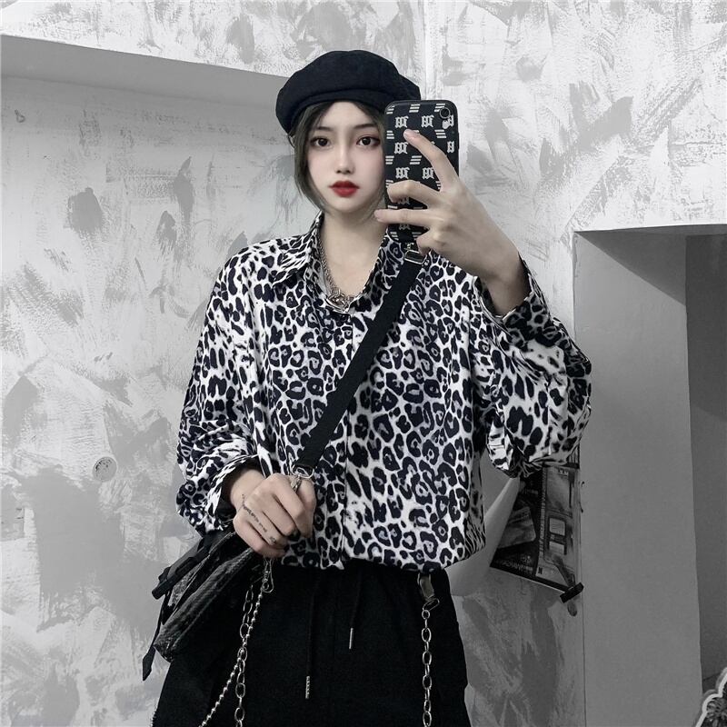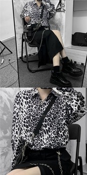 ダークレオパードプリント柄ブラウス 韓国ファッション秋物ウィンタールーズスタンダードカジュアルシャツ ジャケット ロング レトロ オータム 冬物 長袖 デーモン50200725039