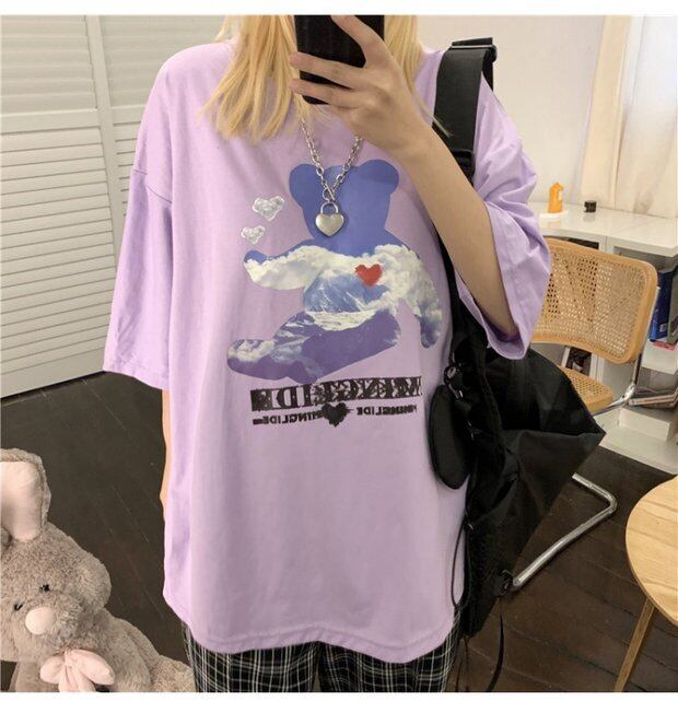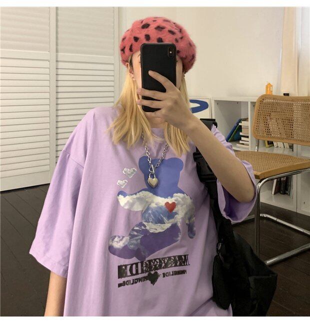 Tシャツトップス レディーススプリング韓国ファッショントレンドスタンダードプリント柄ルーズ レトロ 春物 スタイル デーモン78219558136