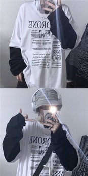 トップス レディーススプリング韓国ファッショントレンドスタンダードプリントルーズTシャツ ロング レトロ 春物 ボーイズ スタイル 長袖 デーモン28321216530