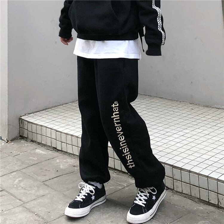 カジュアルパンツ 秋物ウィンター韓国ファッショントレンド刺繍ブラックルーズ オータム 冬物 ボーイズ スタイル デーモン53357474577