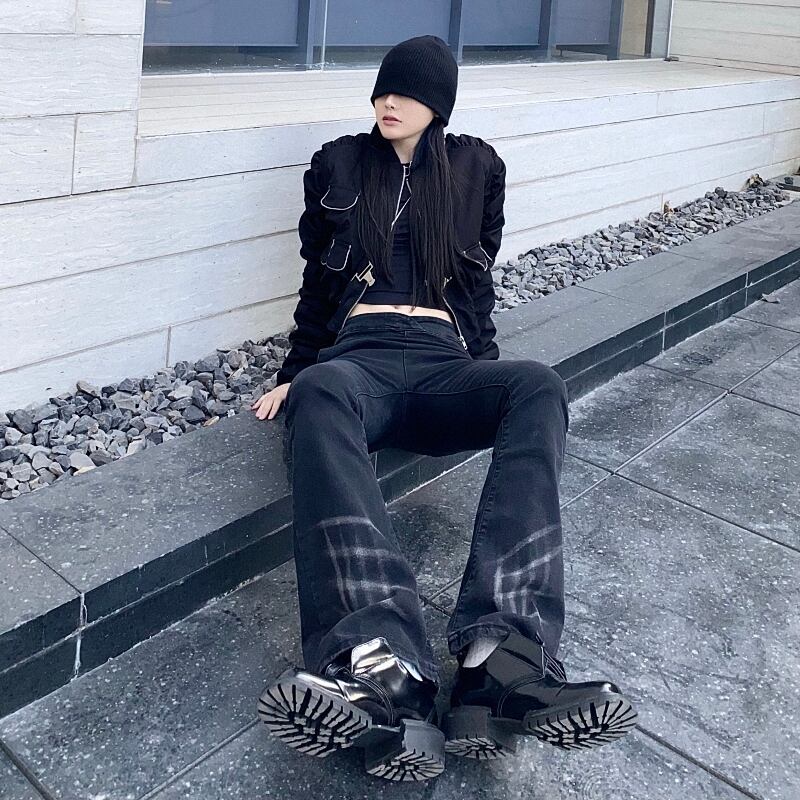 ジーンズ レディース秋物ウィンタートレンド薄手ワイドレッグルーズハイウェストウェストスリムブラックパンツ ストリート オータム 冬物 ワイドパンツ ボーイズ ウエスト デーモン47318655451