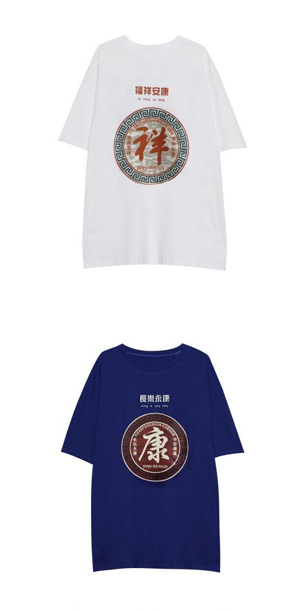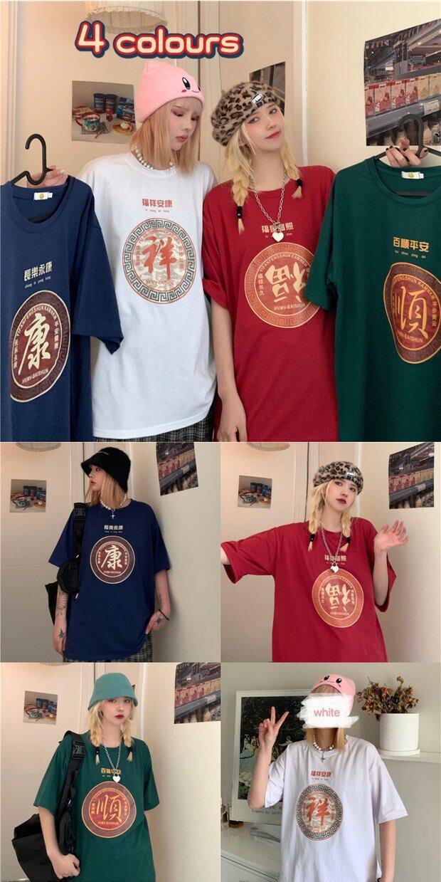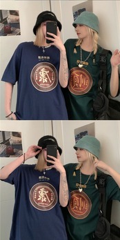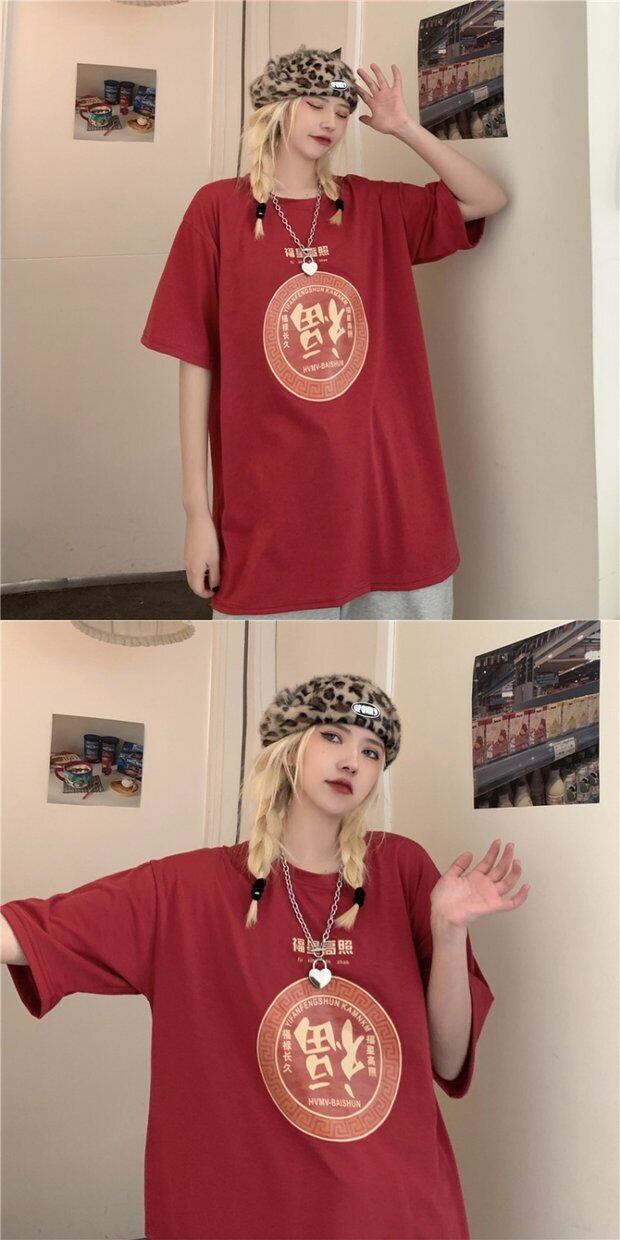 Tシャツレディーススプリング韓国ファッショントレンド自然派プリントルーズラウンドネックトップス 春物 Oネック スタイル デーモン74076938283