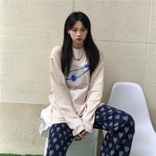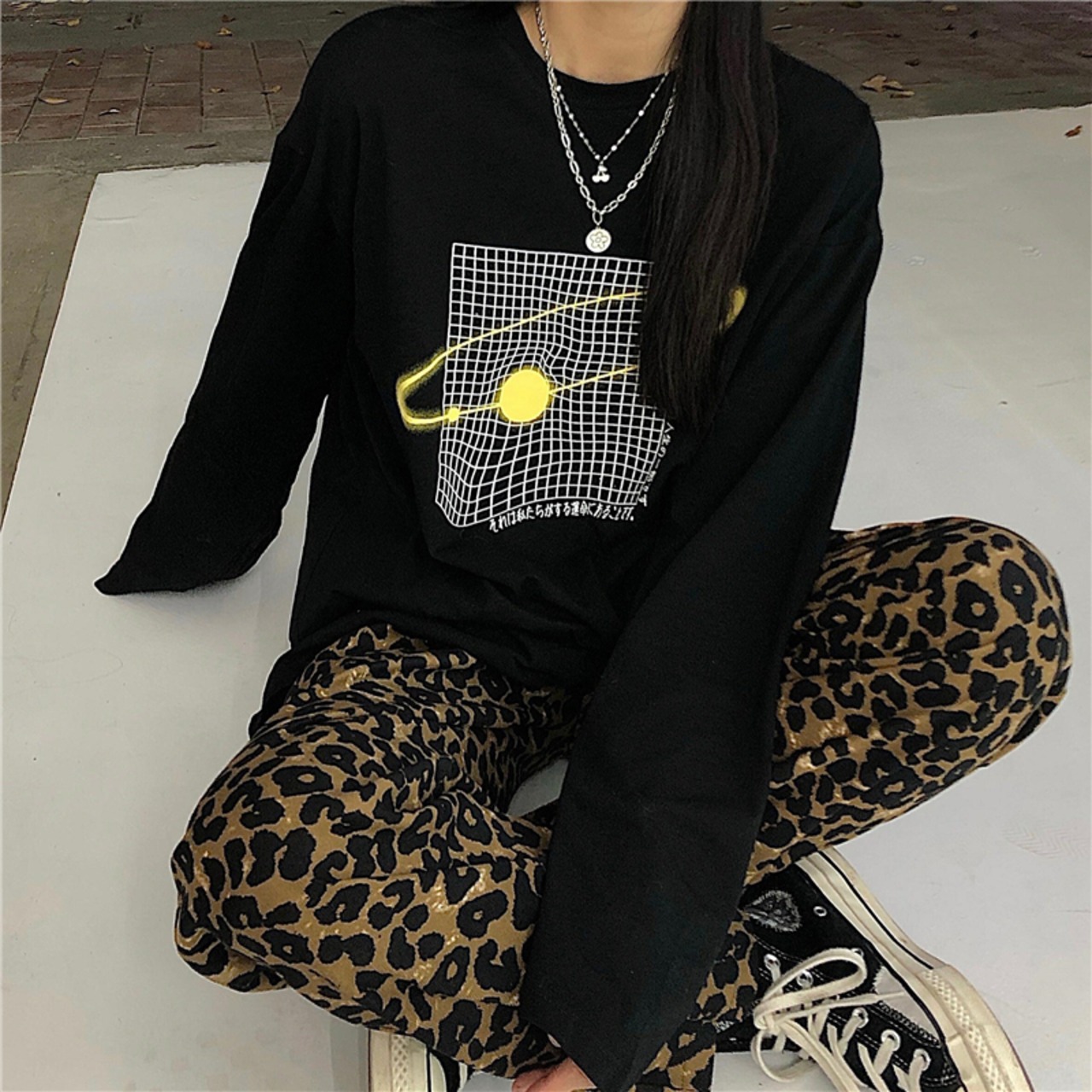 スプリング韓国ファッショントレンドスタンダードプリントルーズ長袖スリーブTシャツメンズレディース ロング レトロ 春物 デーモン72570228346