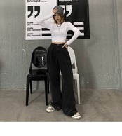 ウェストレディース秋物ウィンタートレンドカジュアルパンツ ルーズ薄手 オータム 冬物 ボーイズ ウエスト デーモン32688056292