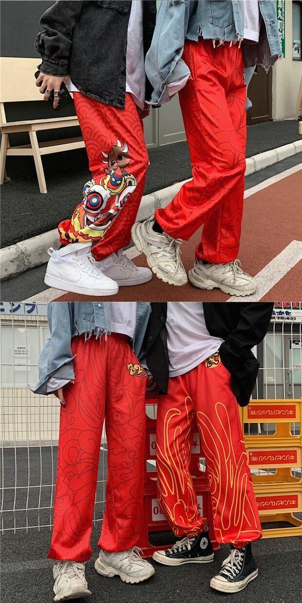 レッドカジュアルレギンス レディース秋物ウィンタートレンドルーズワイドレッグパンツ ハイウェストウェスト オータム 冬物 ワイドパンツ ウエスト デーモン20891018382