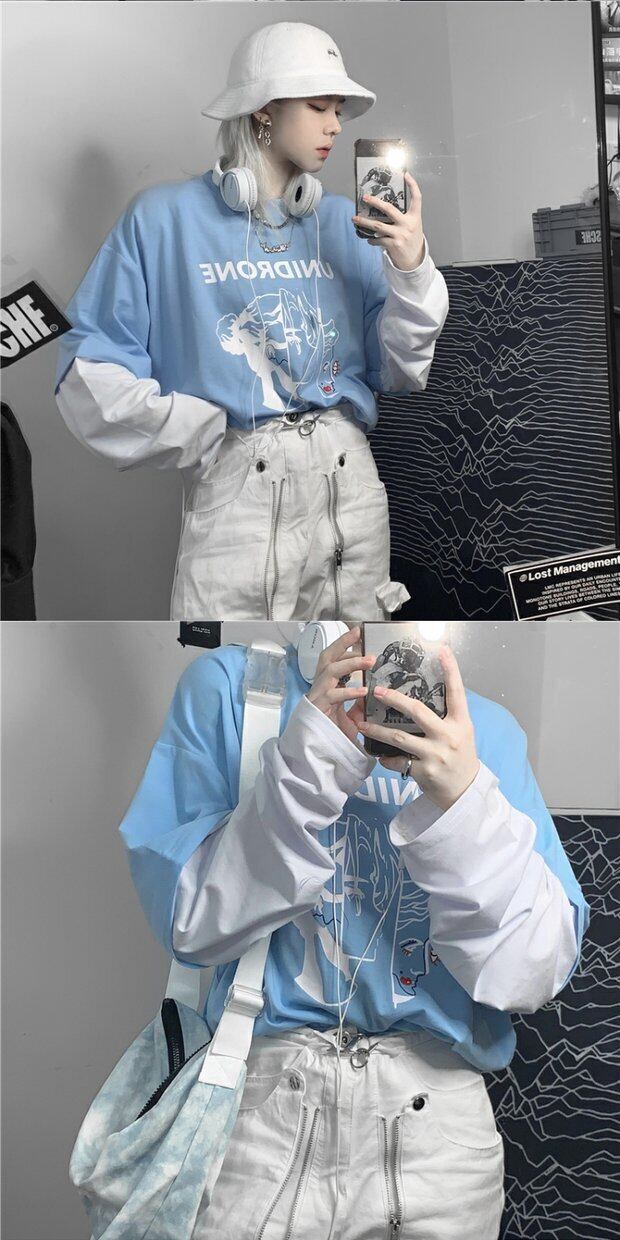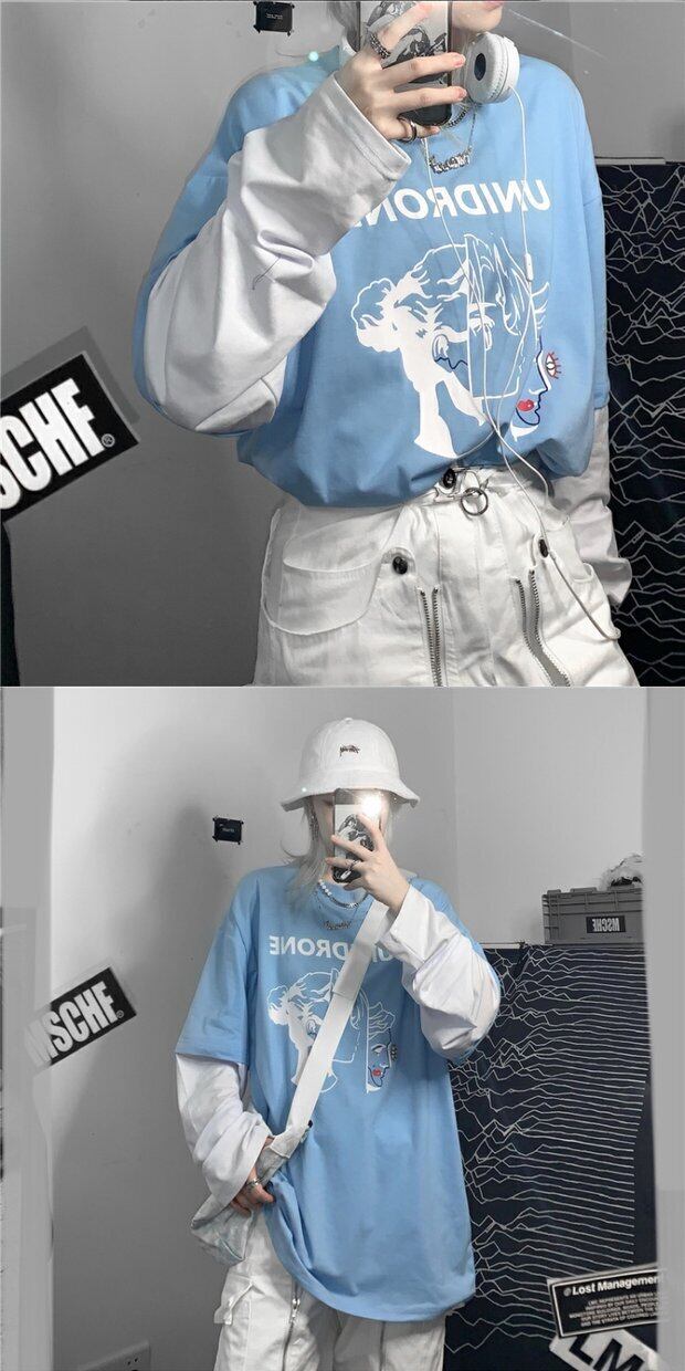 スプリングトップス レディース韓国ファッショントレンドスタンダードプリントルーズ長袖スリーブTシャツ ロング レトロ 春物 ボーイズ スタイル デーモン88312225172