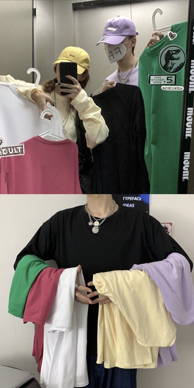 カラーゆったりシャツ トップス レディーススプリング韓国ファッショントレンドベーシックルーズTシャツ ロング 春物 長袖 デーモン59104316053