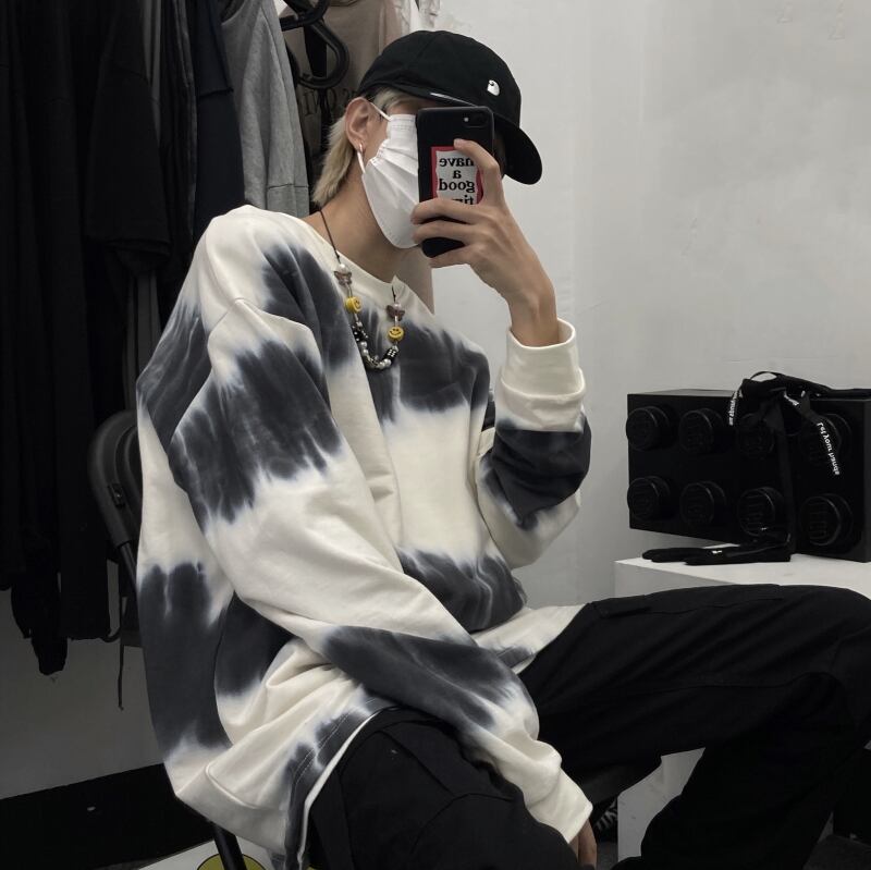 ゆったりシャツ レディーススプリング韓国ファッショントレンドスタイルルーズラウンドネックTシャツトップス ロング 原宿 春物 Oネック 長袖 デーモン11033321684