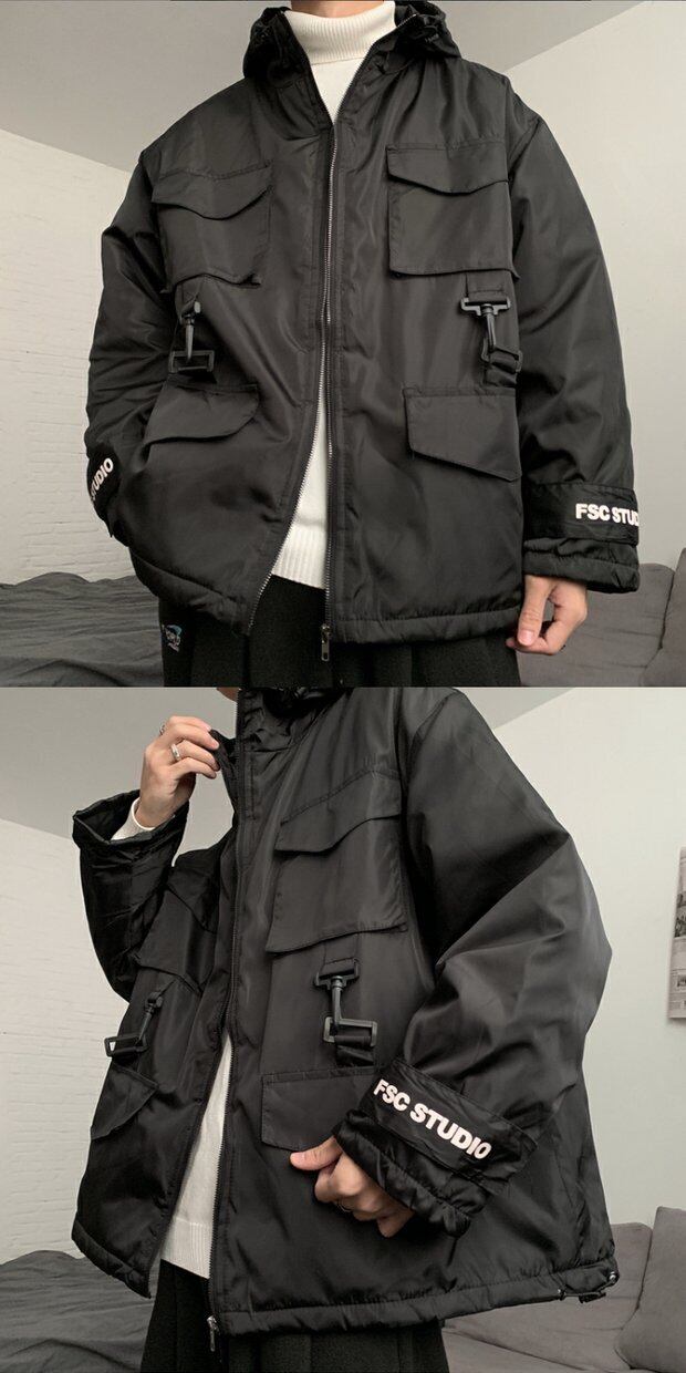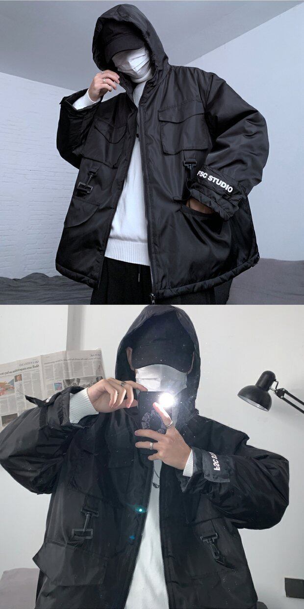 ブラックジャケット スプリング韓国ファッショントレンドスタイルフード コットン 春物 デーモン1693085782