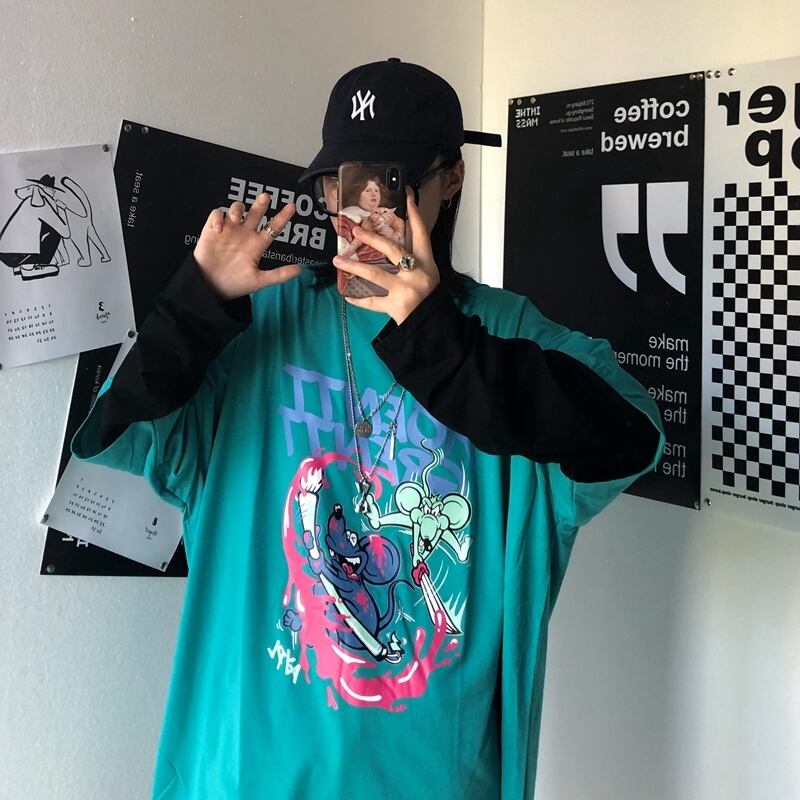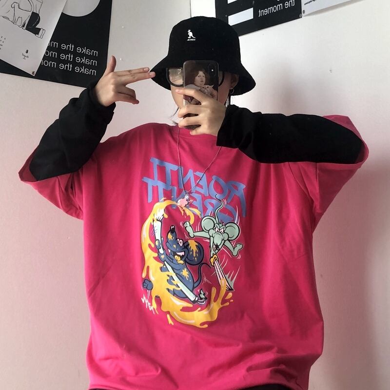 トップス レディーススプリング韓国ファッショントレンドプリントルーズTシャツシャツ ゆったり ロング 春物 スタイル 長袖 デーモン46539072495