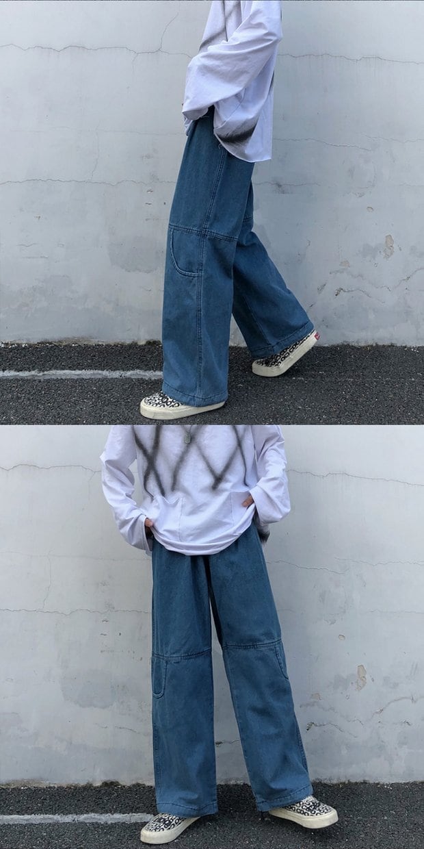 ギャザージーンズ レディース秋物ウィンター韓国ファッションスタイルハイウェストウェストルーズワイドレッグパンツ オータム 冬物 ワイドパンツ ウエスト デーモン48319891246