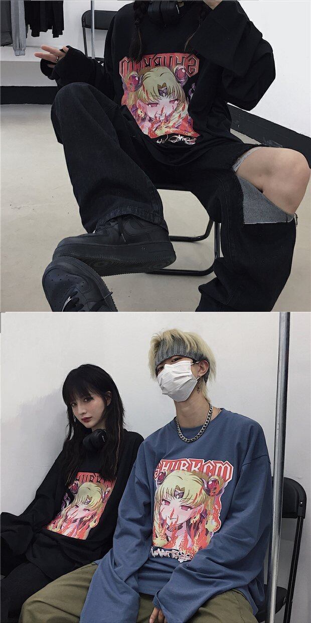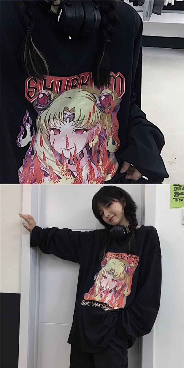 Tシャツシャツ トップス レディーススプリング秋物韓国ファッショントレンドダークプリントルーズゆったり ロング 春物 オータム ボーイズ スタイル 長袖 デーモン83306787521