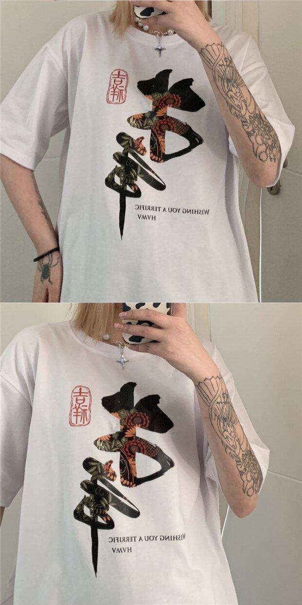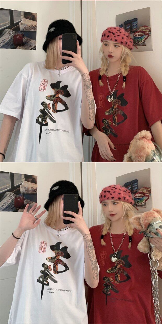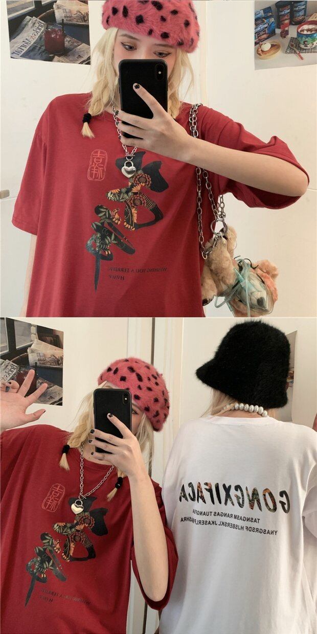 レディーススプリング韓国ファッショントレンドスタイルプリントルーズTシャツトップス 春物 ボーイズ デーモン88352196396