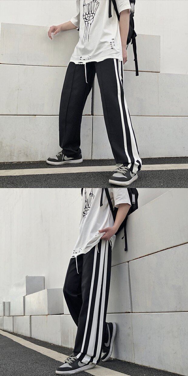 スプリングカジュアルパンツ レディーストレンドストライプワイドレッグハイウェストウェストルーズスリム ストリート 春物 ワイドパンツ ウエスト デーモン21114798862