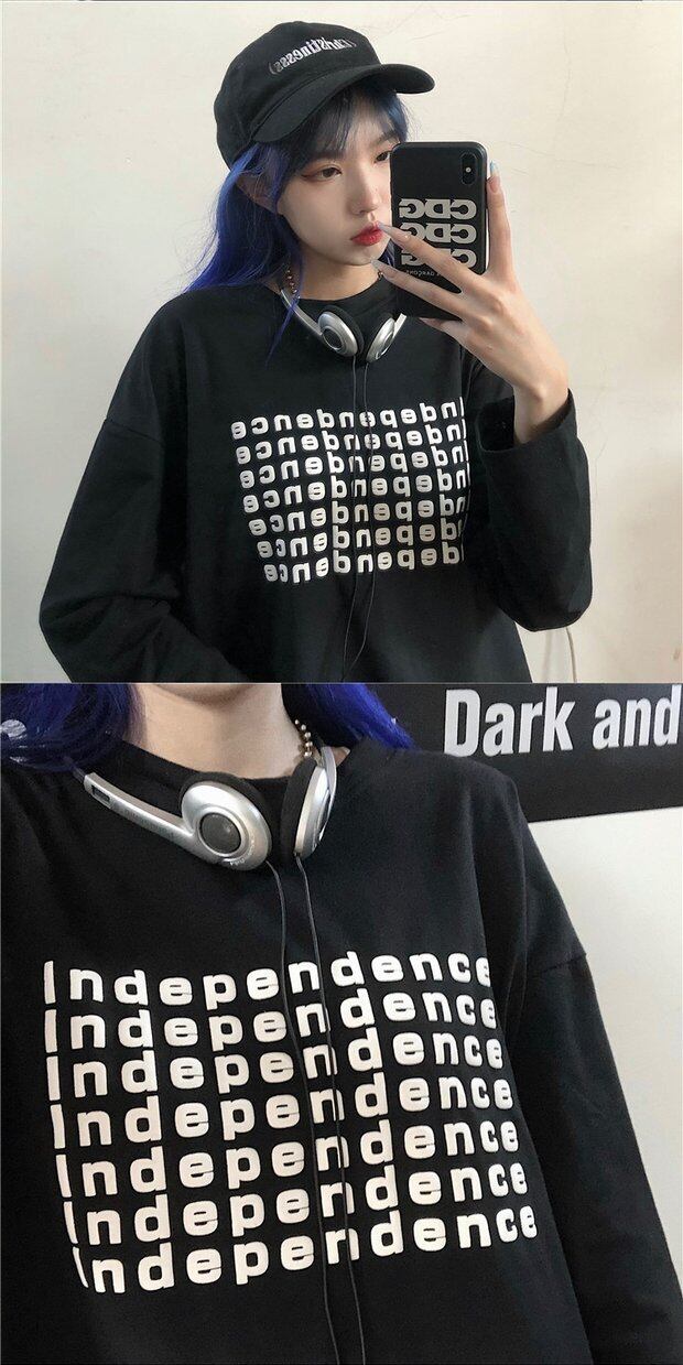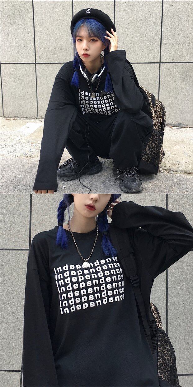 ラウンドネックゆったりシャツ トップス レディーススプリング韓国ファッショントレンドスタイルルーズTシャツ ロング 原宿 春物 Oネック 長袖 デーモン82209898833