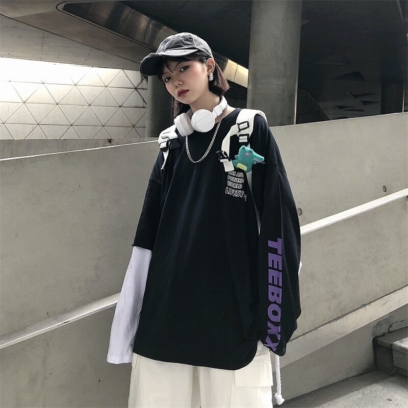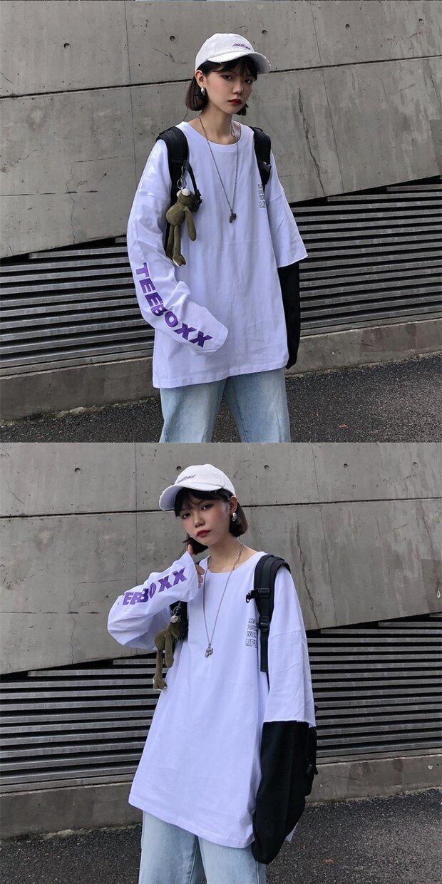 Tシャツシャツ レディーススプリング韓国ファッショントレンドプリントルーズゆったり ロング 春物 ステッチ 長袖 デーモン54793532023
