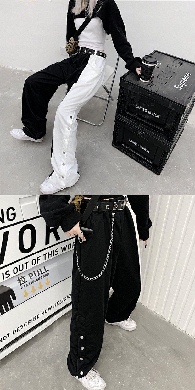 色:黒と白(シングルパンツ),ベルトウエストチェーン