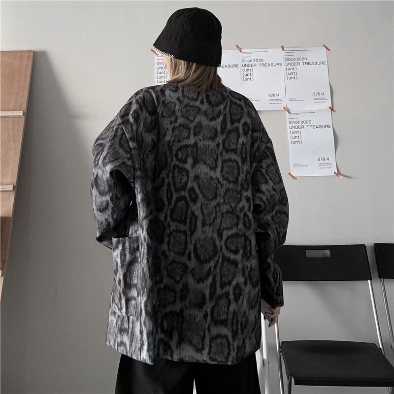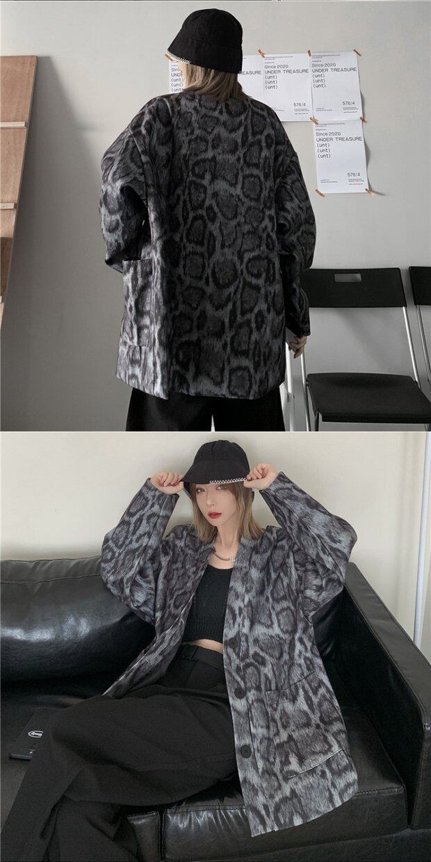 コート レディース韓国ファッショントレンドグレーレオパードプリント柄カジュアル ウィンター 冬物 スタイル デーモン17449771673