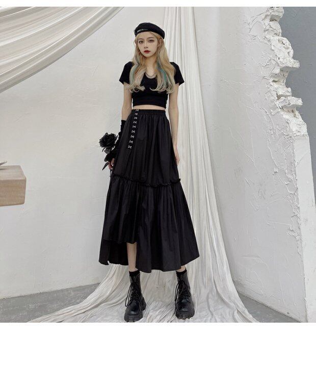 スカート レディーススプリングトレンドブラックAラインハイウェストウェストロング 春物 ウエスト デーモン45595941872