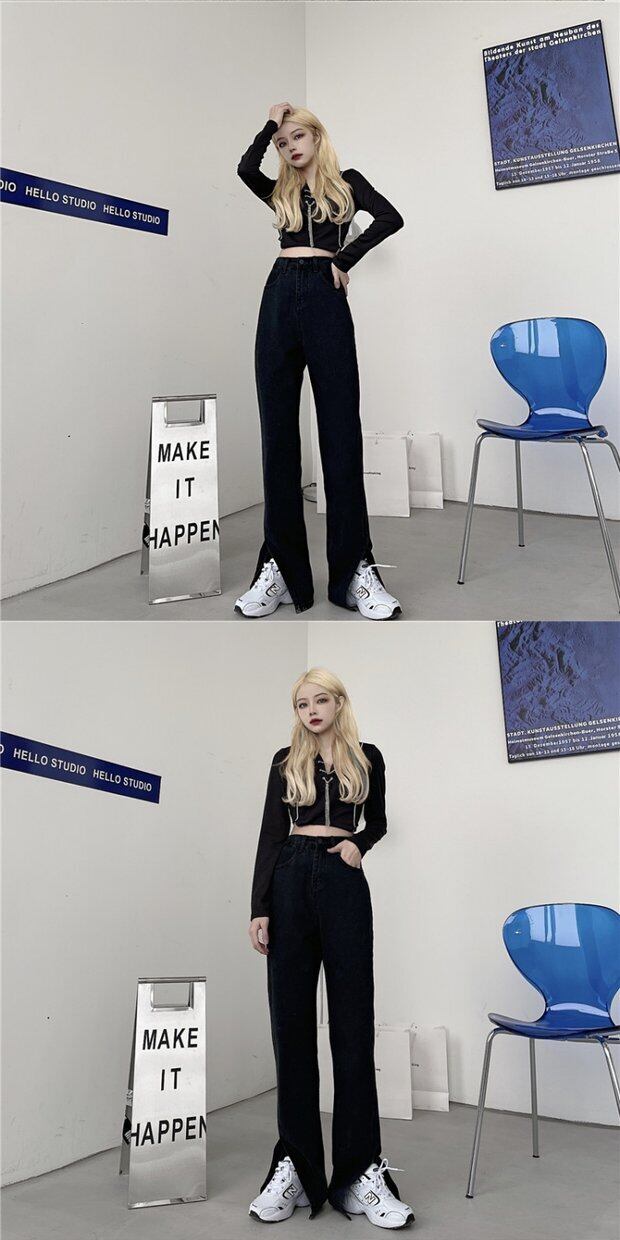 ブラックジーンズ 秋物ウィンタートレンドハイウェストウェスト薄手ルーズカジュアルワイドレッグパンツ オータム 冬物 ワイドパンツ ボーイズ ウエスト デーモン37049633276