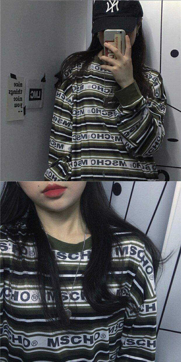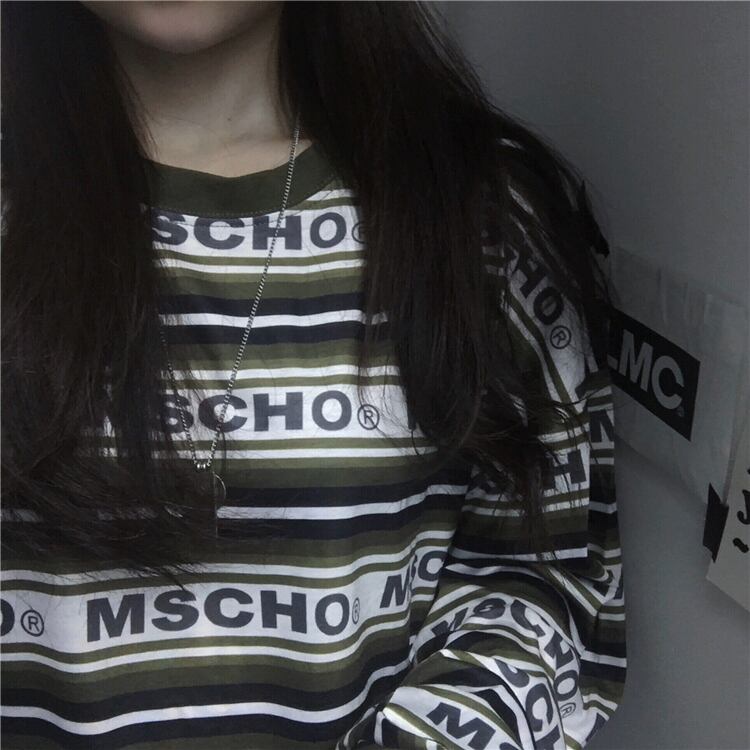 ラウンドネックTシャツシャツ レディーススプリング韓国ファッショントレンドスタイルストライプルーズゆったり ロング 原宿 春物 Oネック 長袖 デーモン77509318255