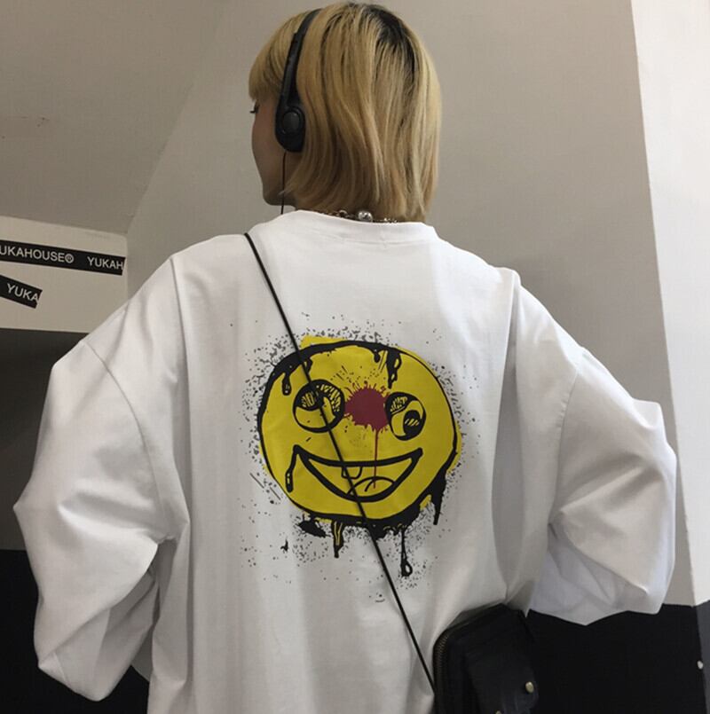 ゆったりシャツ レディーススプリング韓国ファッショントレンドスタンダードプリント柄ルーズトップス Tシャツ ロング レトロ 春物 ボーイズ スタイル 長袖 デーモン71424560075