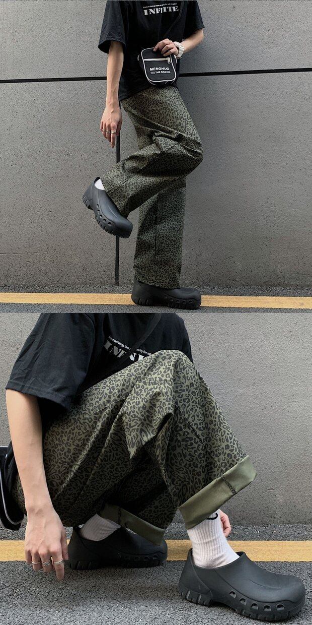パンツ レディース秋物ウィンタートレンドスタンダードレオパードプリント柄ルーズ薄手ハイウェストウェストカジュアル レトロ ストリート オータム 冬物 ボーイズ ウエスト デーモン99005875378