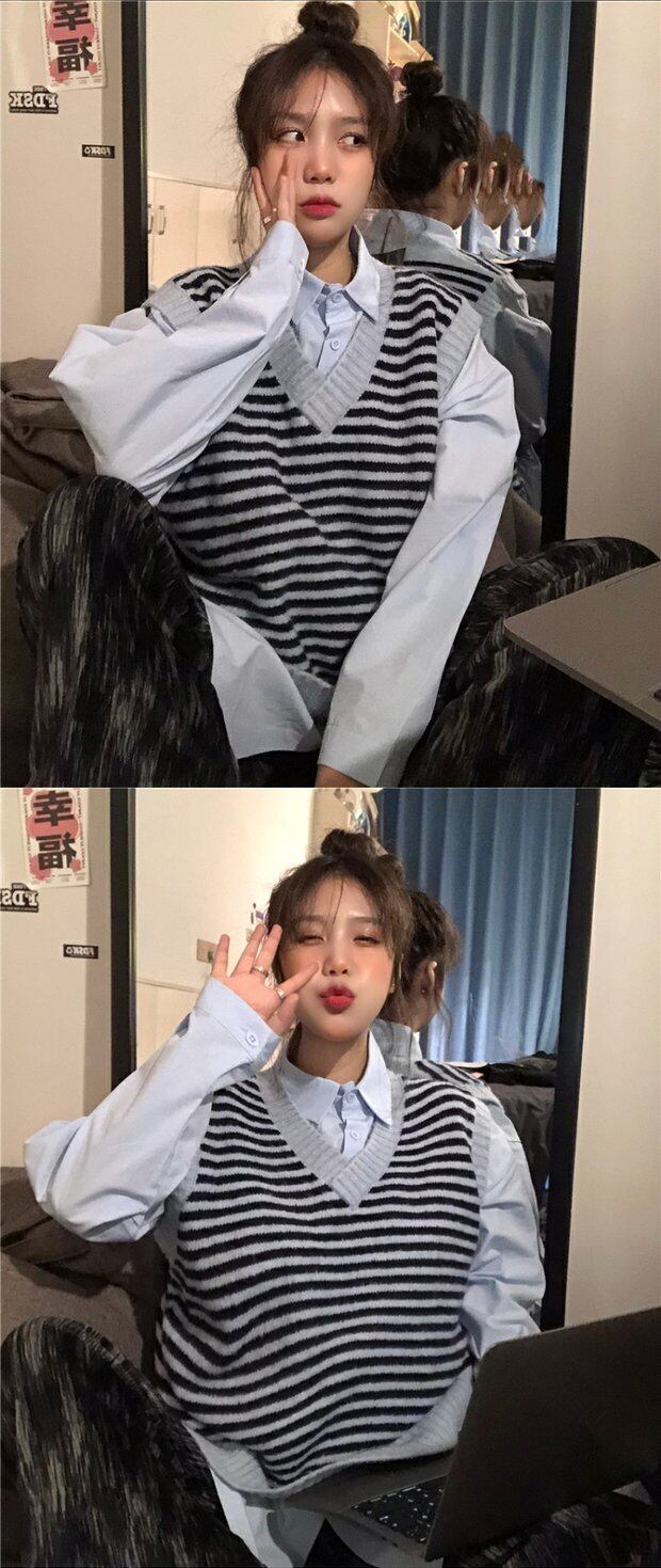スプリングセーター シャツ レディース韓国ファッショントレンドルーズストライプウールコート 春物 スタイル デーモン96306151522