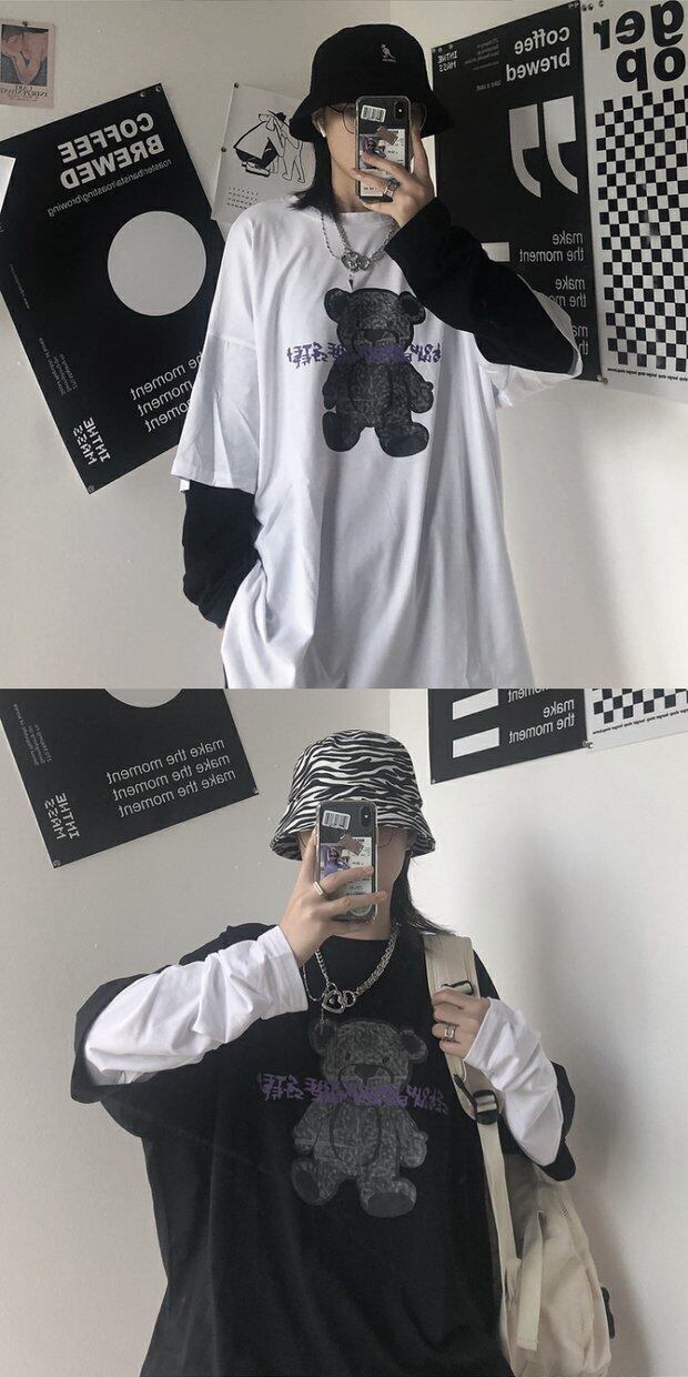 ゆったりシャツ レディーススプリングトレンドスタイルプリント柄ルーズTシャツ ロング 原宿 春物 ボーイズ 長袖 デーモン34453354157
