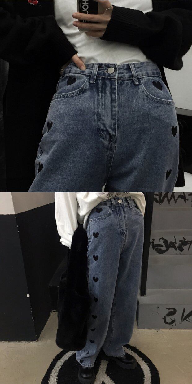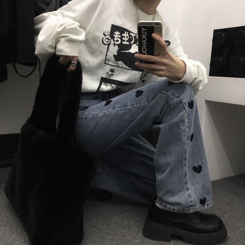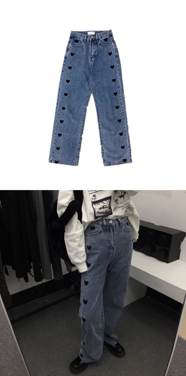 刺繍ジーンズ 秋物ウィンタートレンドブルーパンツ ルーズハイウェスト ストリート オータム 冬物 ウエスト デーモン79380212474