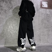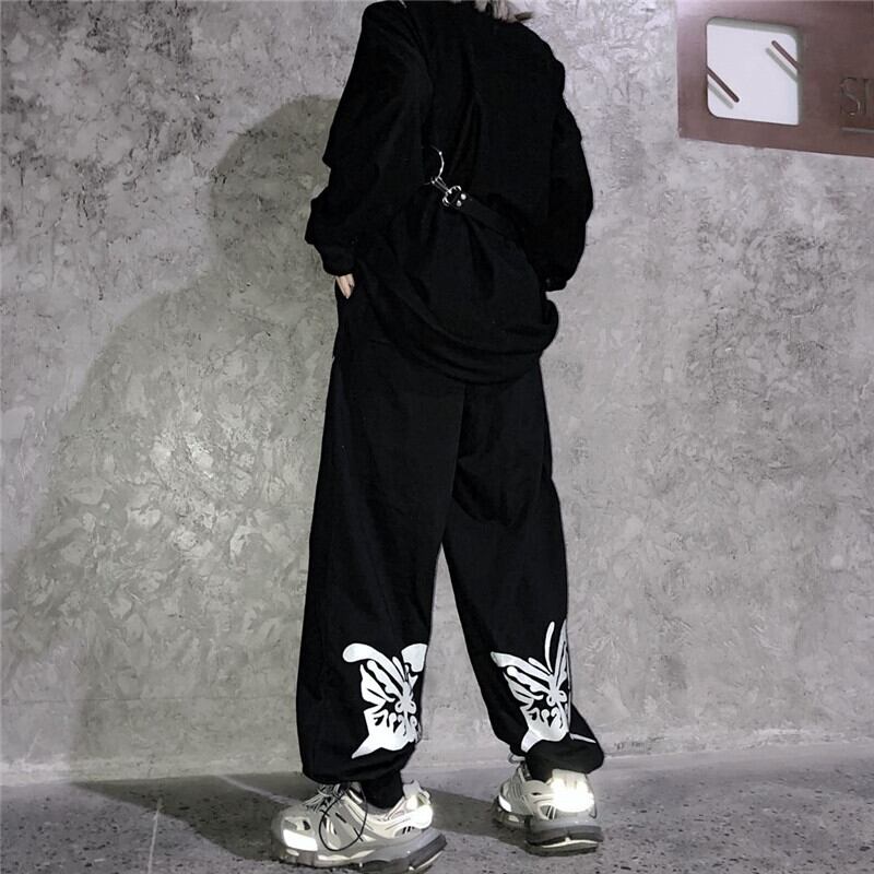 ギャザーカジュアルパンツ レディース秋物ウィンタートレンドButterflyデザイン ブラックルーズハイウェストウェスト薄手 オータム 冬物 ボーイズ ウエスト デーモン72324528865