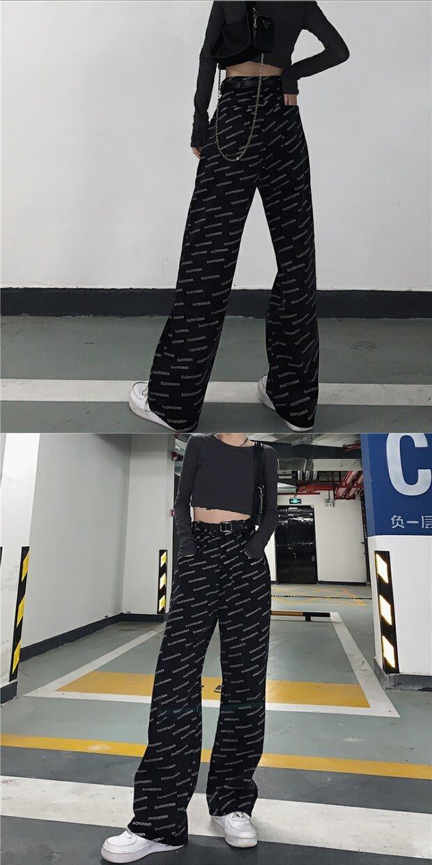 ウェストジーンズ レディース秋物ウィンタートレンドプリントルーズ薄手ブラックカジュアルパンツ オータム 冬物 ウエスト デーモン50475667800