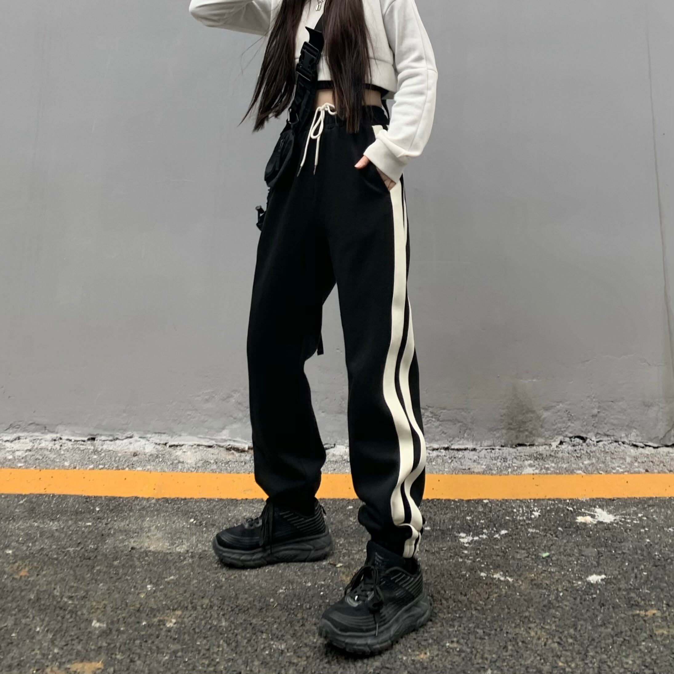 ギャザーパンツ レディーススプリング韓国ファッショントレンドブラックルーズカジュアル 春物 ボーイズ スタイル デーモン44448173916