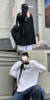 ゆったりシャツ スプリング韓国ファッショントレンドプリントルーズTシャツトップス レディース ロング 春物 スタイル 長袖 デーモン20868446075