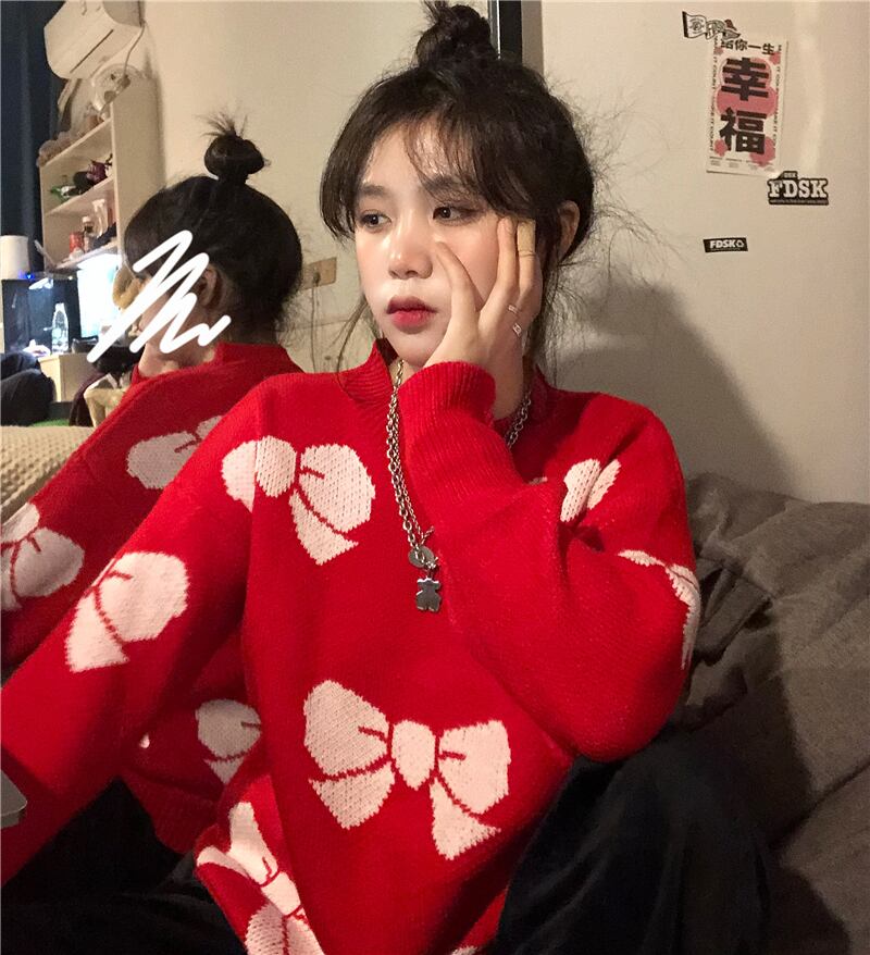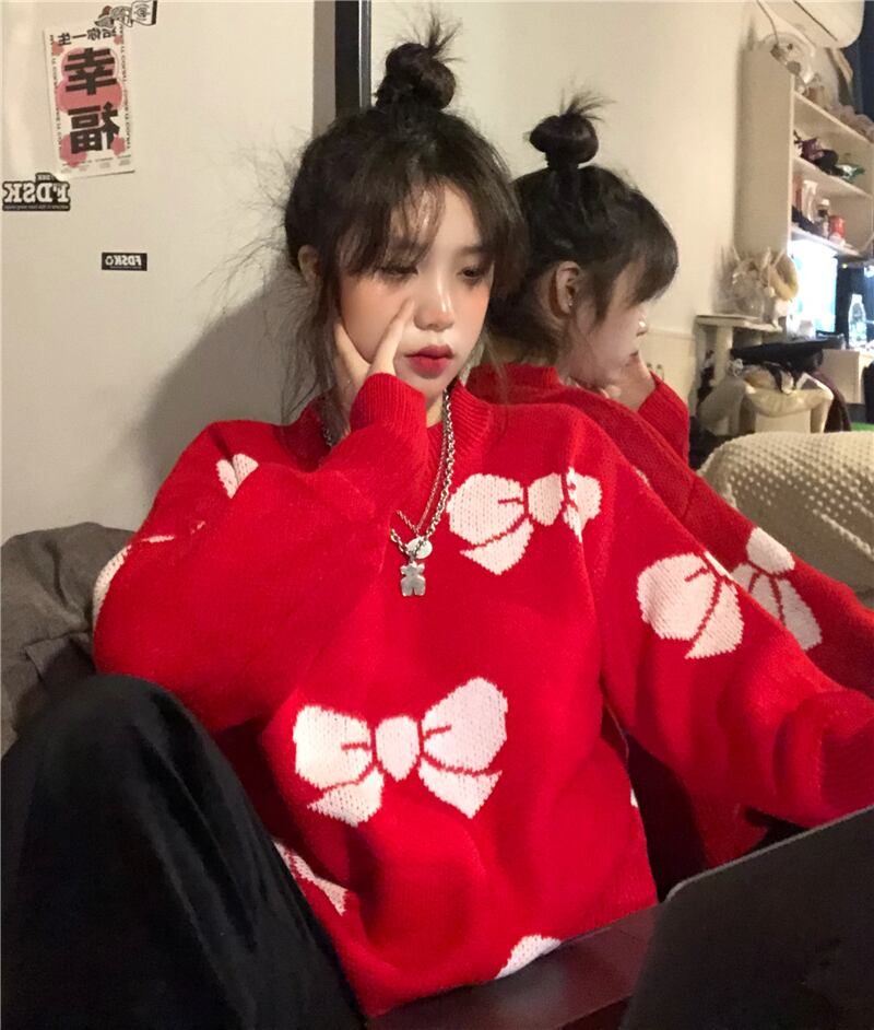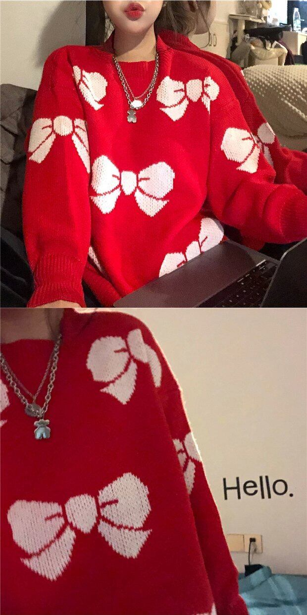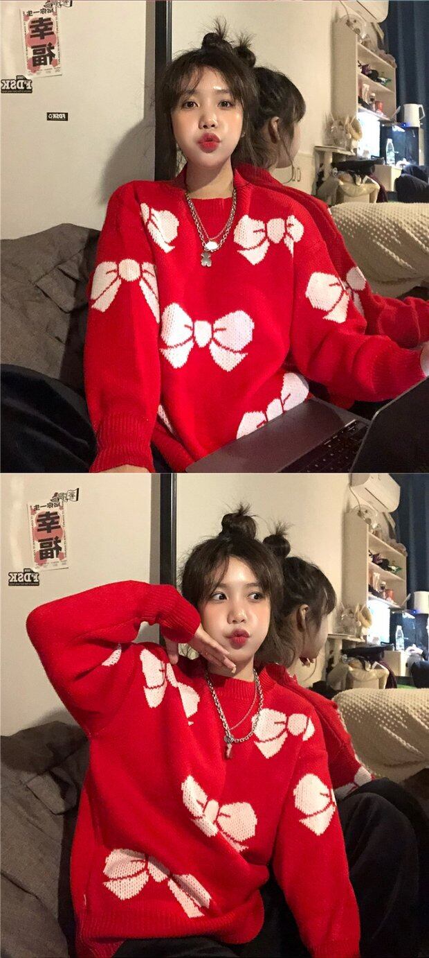 セーター レディーススプリング韓国ファッショントレンドレッドルーズニットコート 春物 スタイル デーモン58813671193