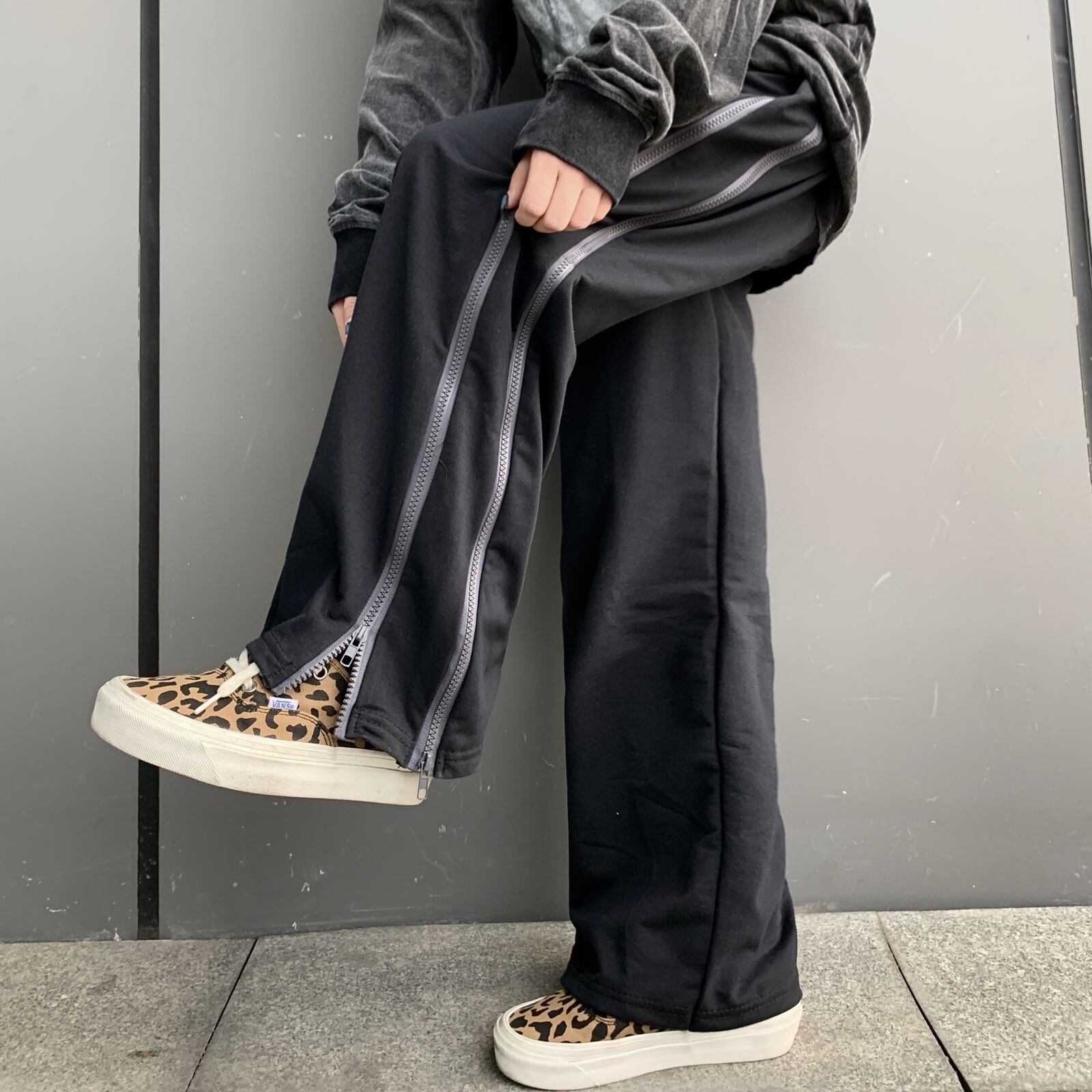パンツ 秋物ウィンタートレンドジッパーワイドレッグルーズハイウェストウェストカジュアル オータム 冬物 ワイドパンツ ウエスト デーモン44533396207