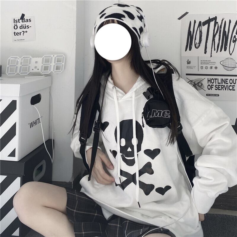 スプリングセーター レディース韓国ファッショントレンドダークプリントルーズホワイト薄手フードジャケット 春物 ボーイズ スタイル デーモン50745888938