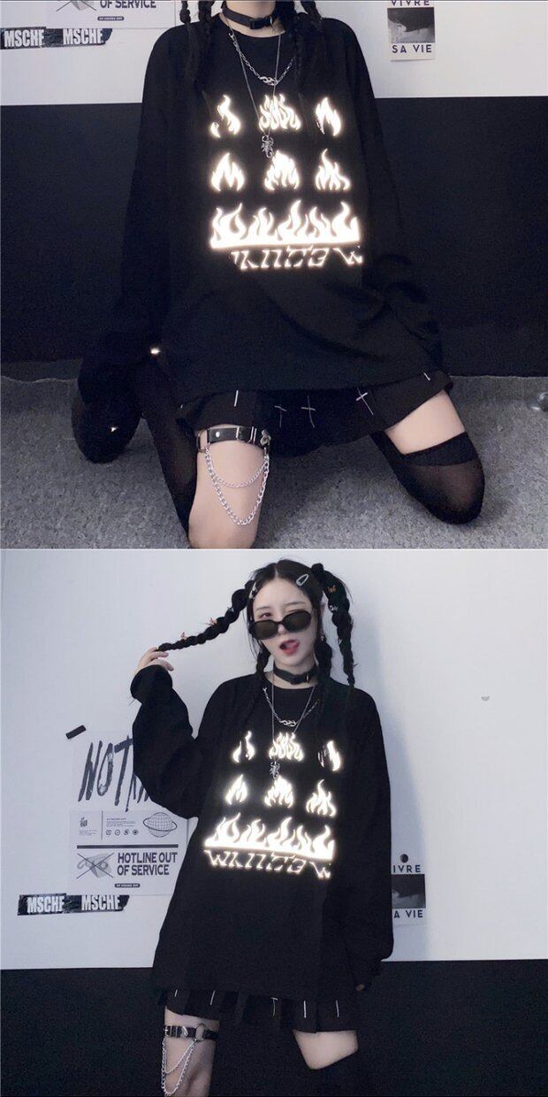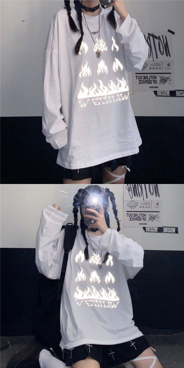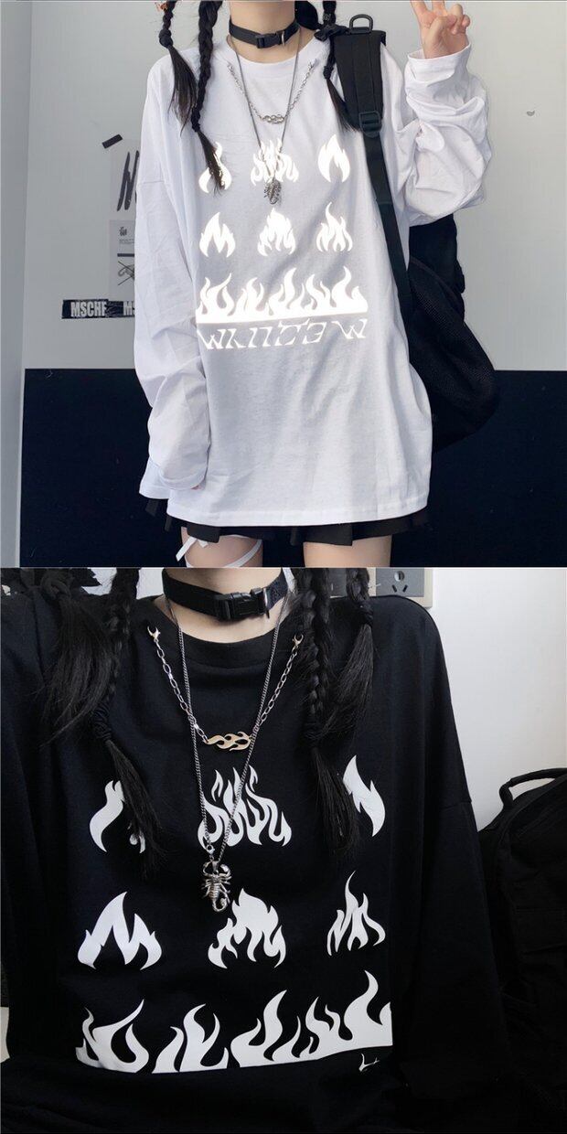 Tシャツシャツ レディーススプリング韓国ファッショントレンドプリントルーズゆったりトップス ロング 原宿 春物 ボーイズ スタイル 長袖 デーモン94109264182
