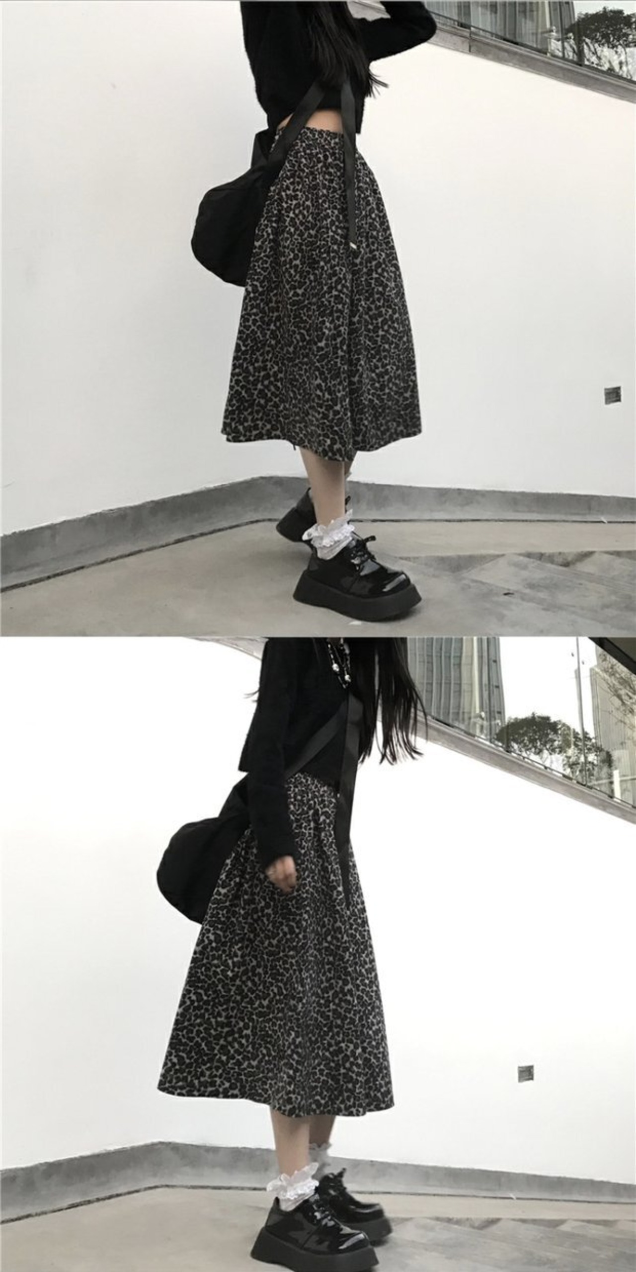 スカート レディーススプリングトレンドスタンダードレオパードハイウェストウェストAライン レトロ 春物 ウエスト ミドル丈 デーモン61638223200